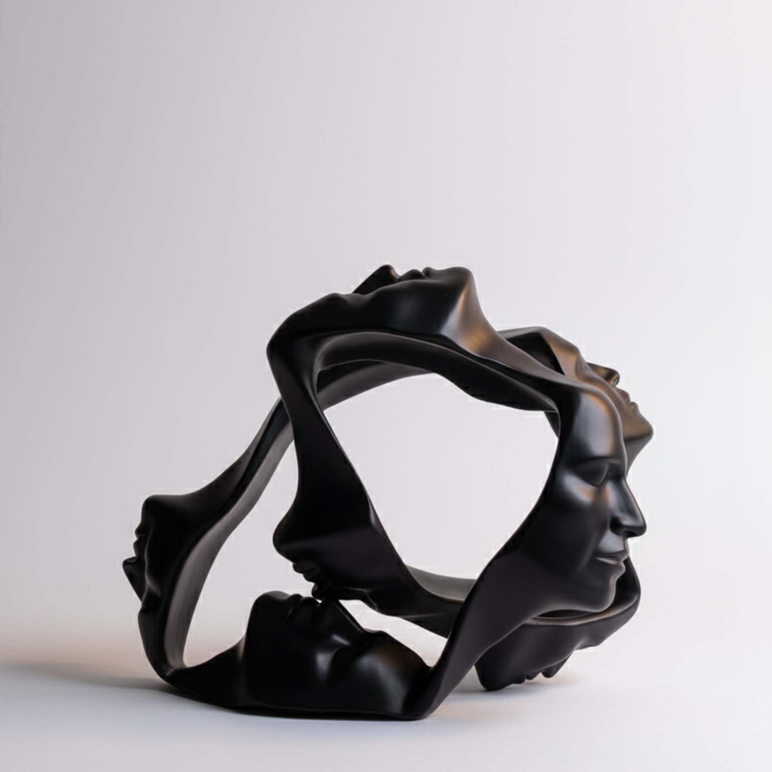 Handmade Sculpture piece expertly crafted from high-quality fiberglass, this piece combines lasting strength with modern artistry. The stylized design captures complex facial expressions, making it a striking focal point for any contemporary space.