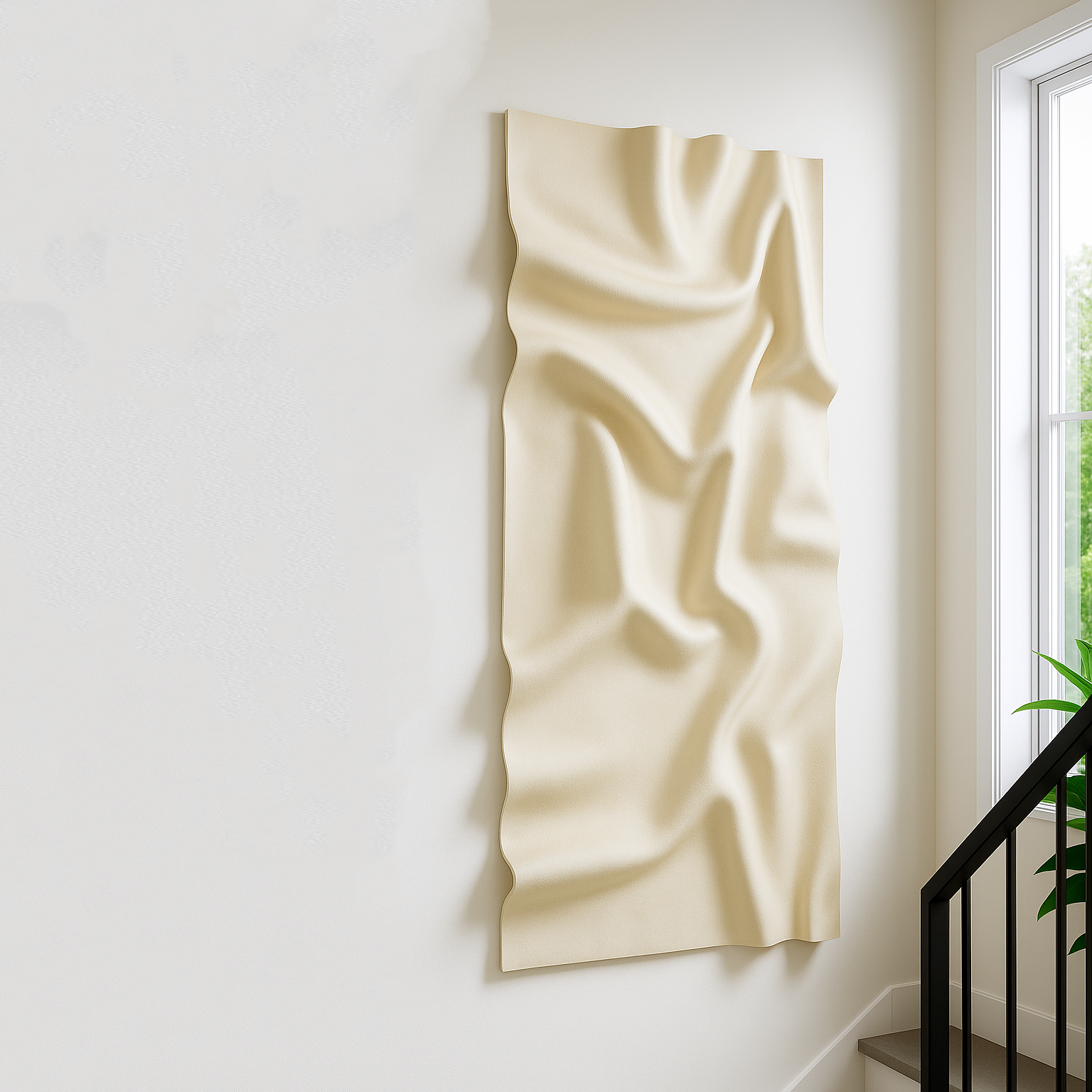 Velora is a statement wall sculpture inspired by the graceful movement of flowing fabric folds. Its organic contours create depth and elegance, bringing a sense of movement to any space.