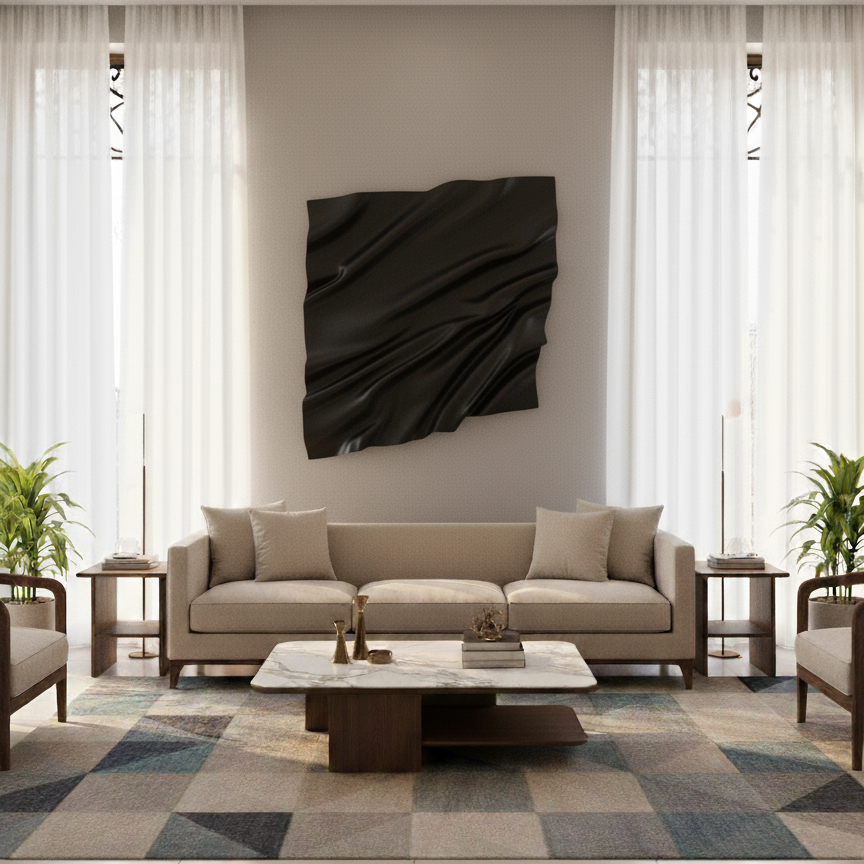 Expertly crafted from high-quality fiberglass, this piece merges durability with refined modern artistry. The design highlights intricate fabric-like folds, creating a dynamic visual texture that makes it a striking focal point in any contemporary space.